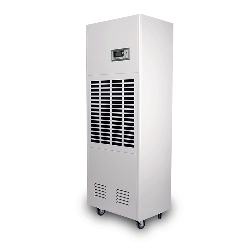 工業除濕機由壓縮機、交換器、風機、盛水器、機殼及控制器等組成,其工作原理是:由風扇將潮濕空氣抽入機內,通過熱交換器,此時空氣中的水份冷凝成水珠,變成干燥的空氣排出機外,如此循環使室內濕度降低。